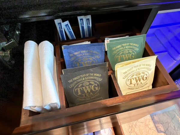 コーヒーメーカーはオーストリア・ウィーン発祥のJulius Meinl製。紅茶はおなじみのTWGが用意されています。