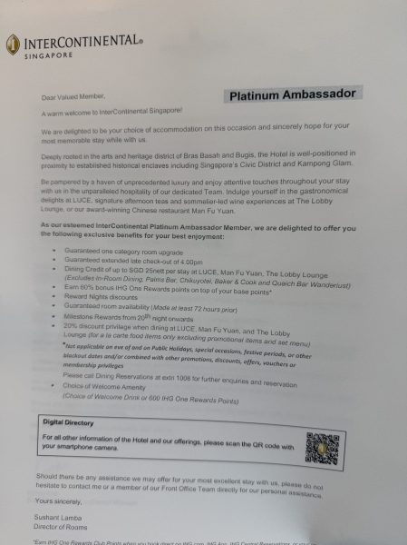 インターコンチネンタルホテル シンガポール InterContinental Singapore 宿泊記