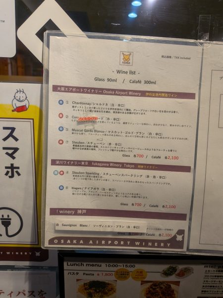 伊丹空港に到着後、プライオリティ・パスで利用できるレストラン「大阪エアポートワイナリー」へ。